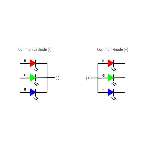 An RGB LED is an LED module that can produce almost any color using these three primary additive colors: Red, Green and Blue. The simplest version of an RGB LED has a combination of 3 separate light-emitting diodes in one package, housed under a clear protective lens. This LED package will have 4 pins, one for each of the three colored diodes and one common anode (+) or cathode (-).